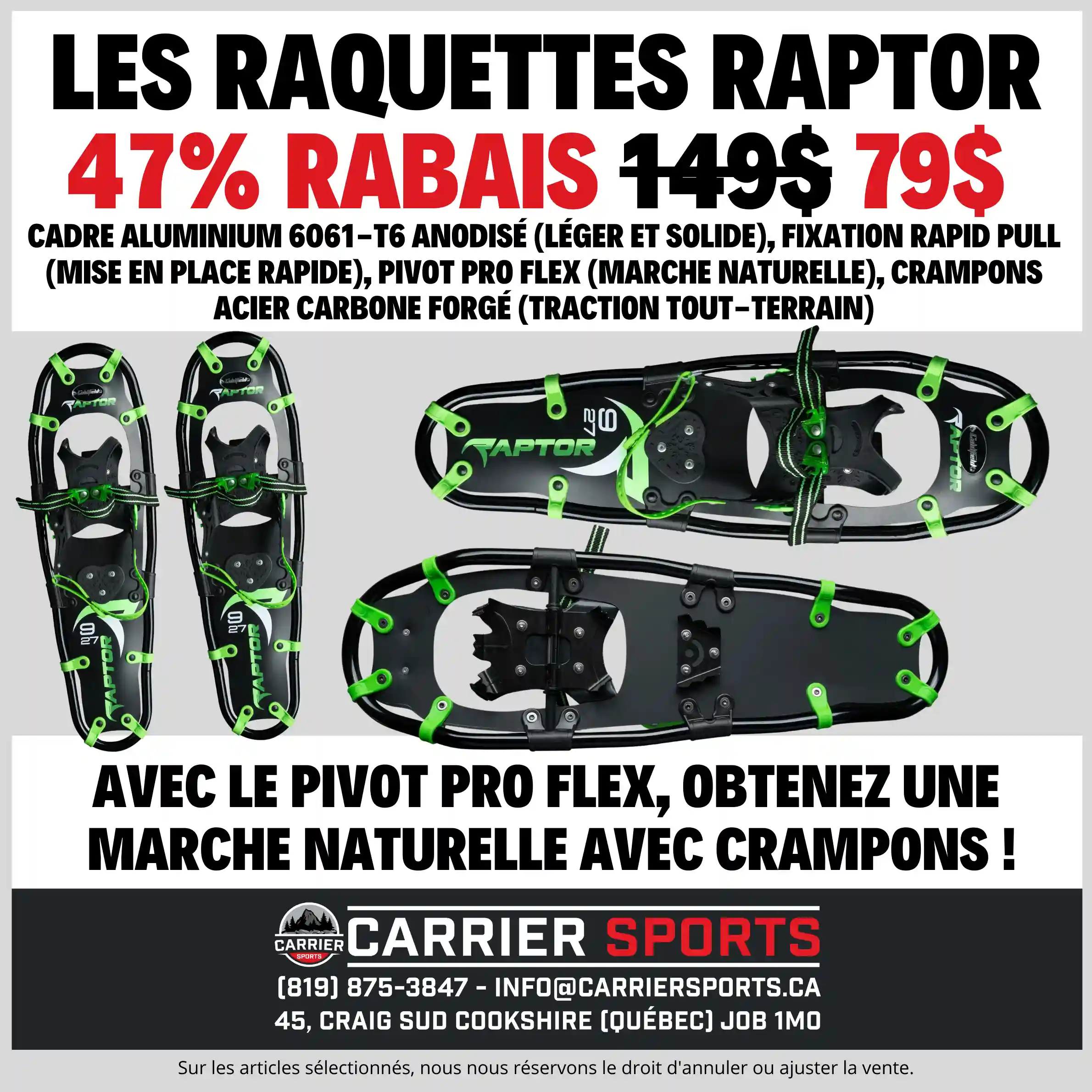 Chez Carrier Sports, nous croyons qu’entrer dans notre magasin, ce n’est pas simplement magasiner : c’est vivre une expérience unique. Ici, vous êtes accueilli comme un ami, parfois même comme un membre de la famille. Tout peut se discuter, tout peut se négocier, toujours dans le respect et la transparence.