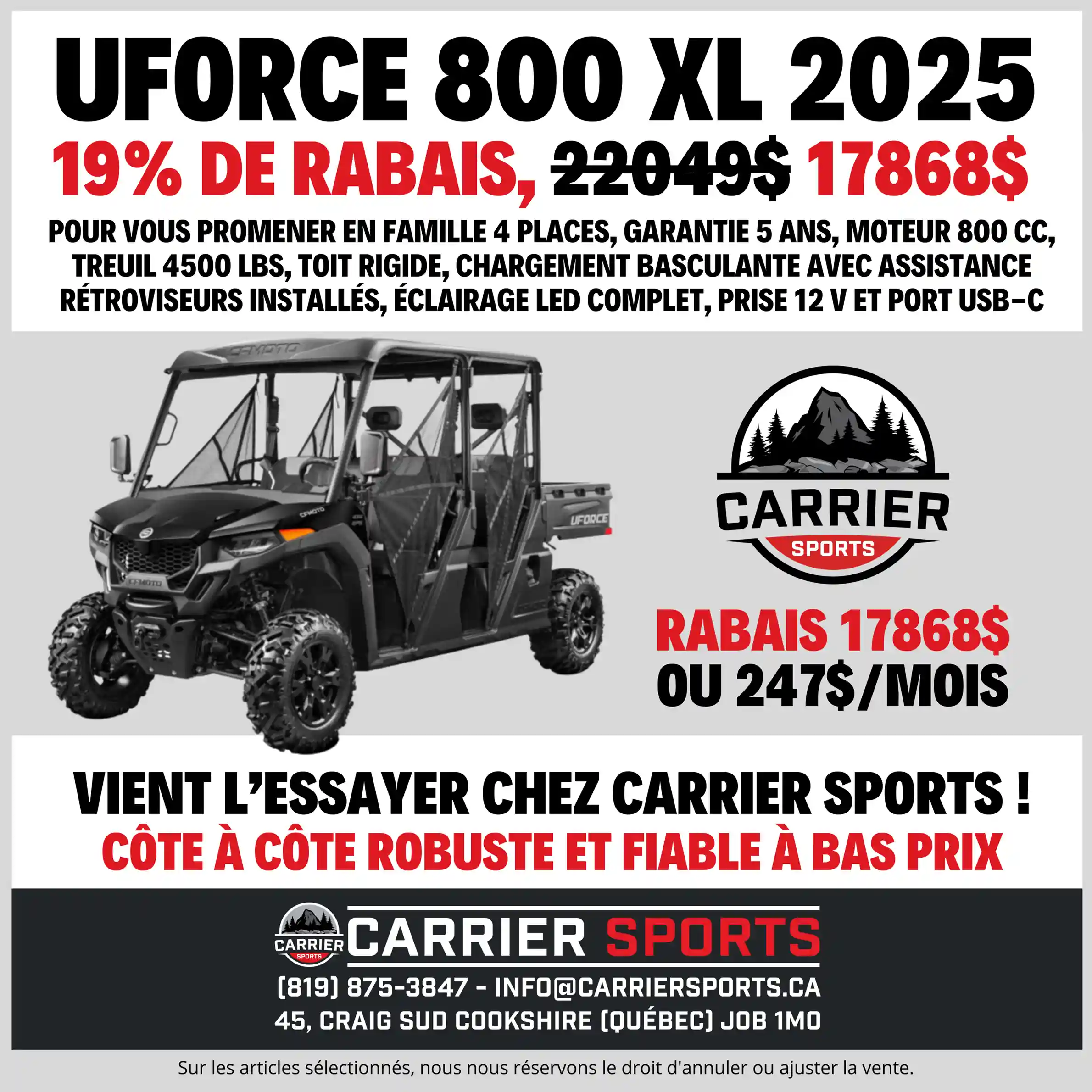 Peu importe ce que vous cherchez chez Carrier Sports : VTT, côte-à-côte, motos, vêtements, chasse & pêche ou accessoires. Vous pouvez compter sur nous pour vous conseiller et vous offrir le meilleur pour votre budget, en magasin.
