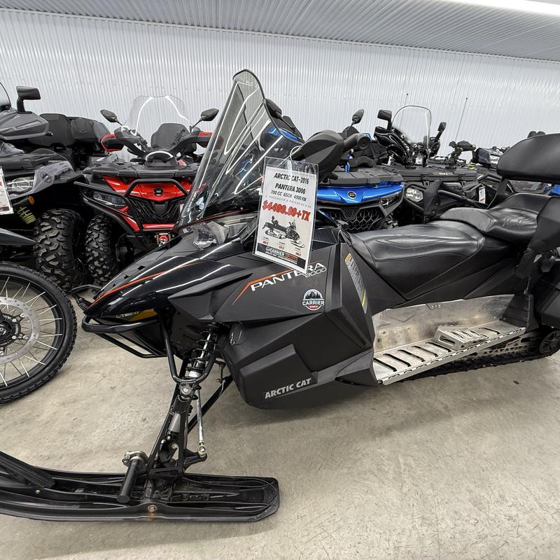 La motoneige ARCTIC CAT PANTERA 3000 2016 est une machine de randonnée confortable et polyvalente, pensée pour les longues journées sur les sentiers. Avec son moteur 4-temps efficace, sa suspension indépendante conçue pour le confort et son châssis stable, elle offre une conduite douce, prévisible et agréable en toutes conditions.
