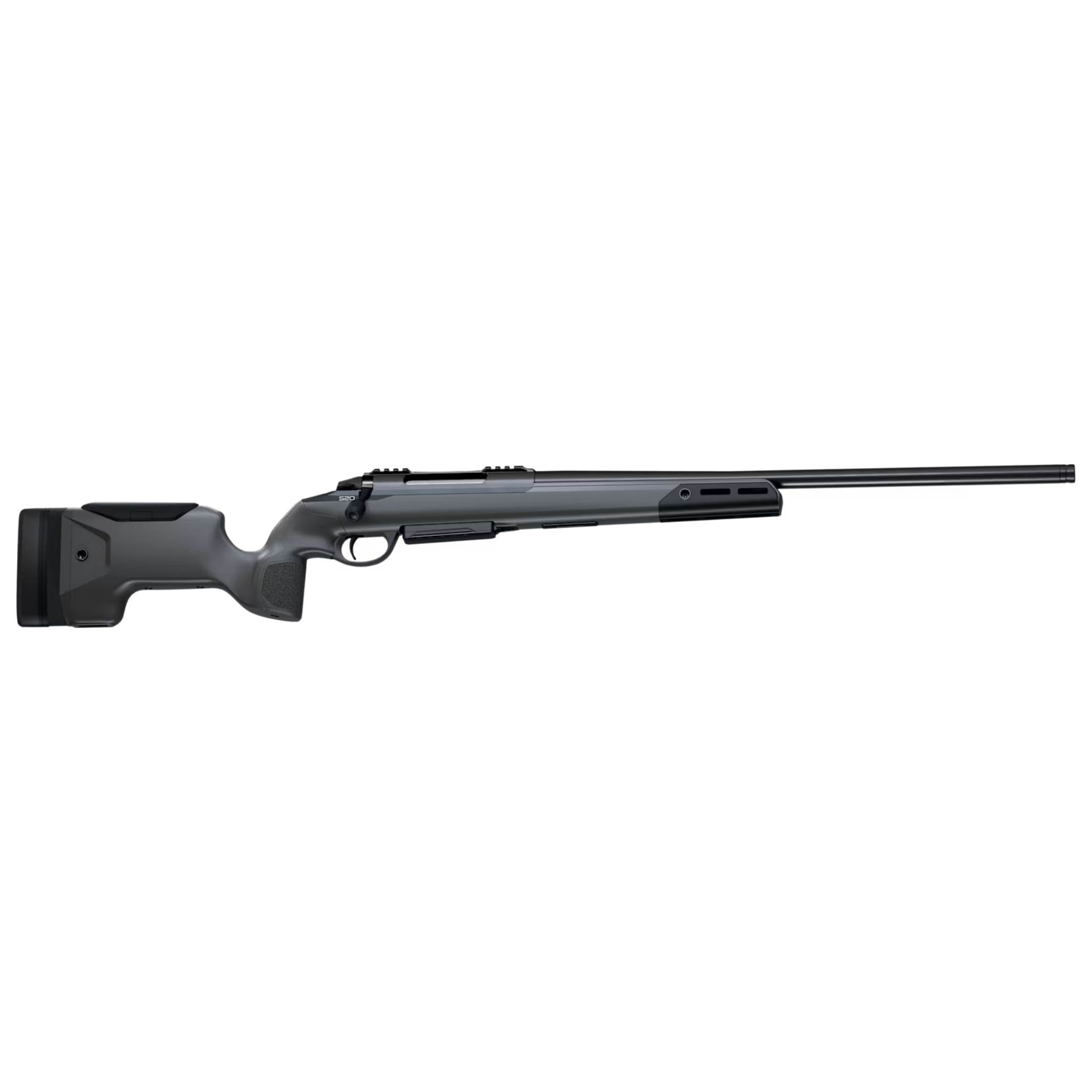 Au cœur de la S20 se trouve un canon de 61 cm (24 pouces), martelé à froid, flûté et fileté (5/8-24) pour l'installation d'un frein de bouche ou d'un modérateur de son. Cette conception assure une précision sous-MOA constante et une excellente gestion de la chaleur. Le boîtier de culasse en acier est doté d'un rail Picatinny intégré pour un montage d'optique solide comme le roc. La crosse Precision offre des réglages complets de la hauteur de l'appui-joue et de la longueur de la crosse, garantissant une ergonomie parfaite. La détente à deux étages est également réglable, permettant au tireur d'obtenir une rupture nette et prévisible.