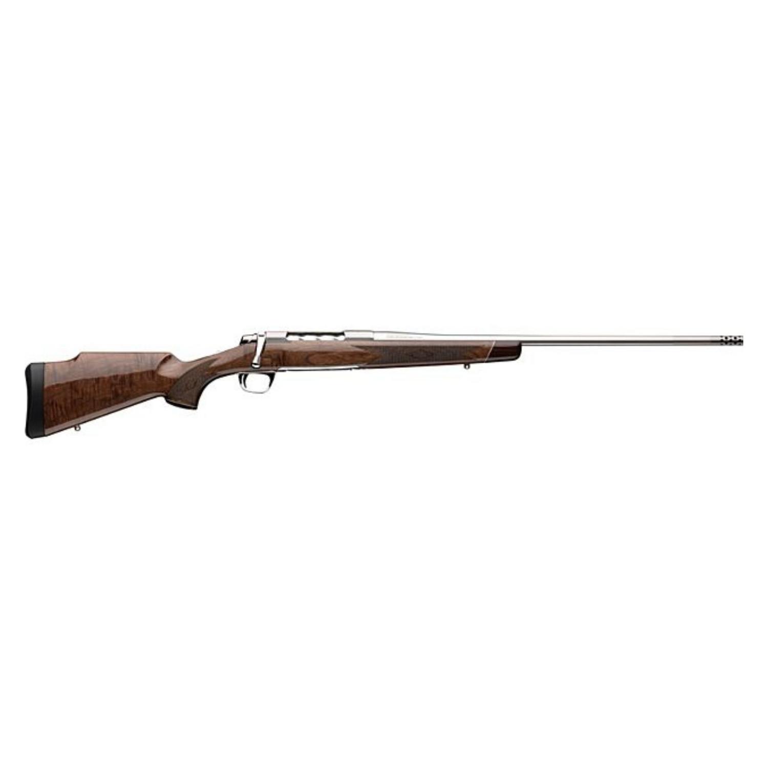 Le cœur de la White Gold Medallion est sa conception méticuleuse. La crosse est fabriquée à partir d'un noyer Claro de grade A, sélectionné pour la beauté de son grain, et est complétée par un embout en bois de rose et un quadrillage fin pour une prise en main sûre. Le canon de 22 pouces, forgé à froid, assure une précision constante, tandis que l'action et le canon reçoivent un fini bleui riche et lustré qui protège le métal et ajoute à son attrait visuel. La détente réglable à deux étages permet au tireur d'atteindre le plein potentiel de précision de la carabine.