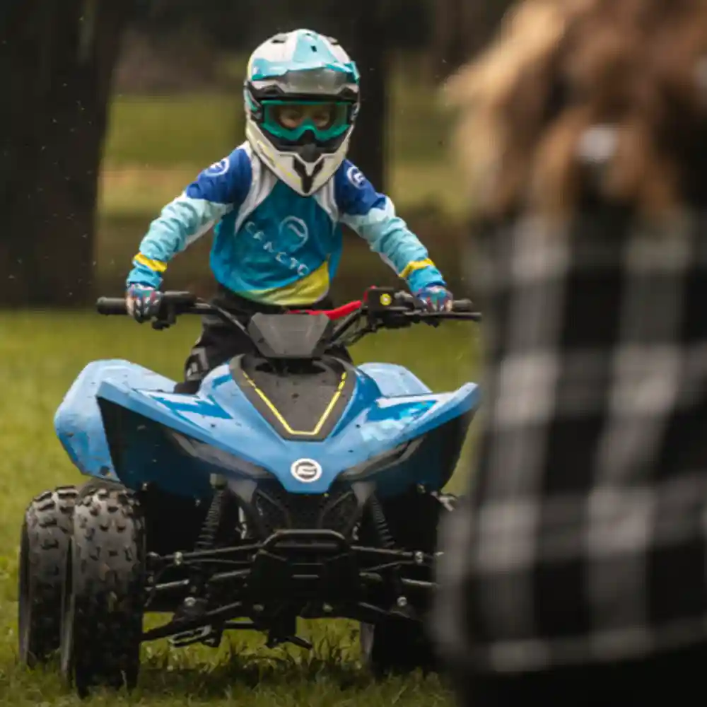 Son moteur monocylindre 4-temps de 107 cc, à injection électronique et démarrage électrique, délivre une puissance douce et parfaitement adaptée aux jeunes pilotes.
