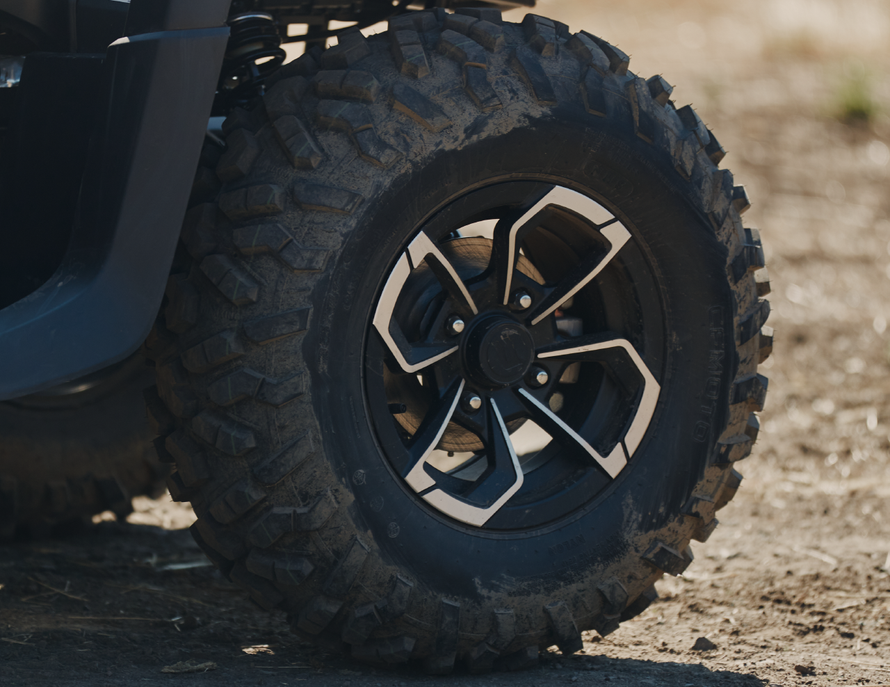 Jantes en aluminium 12 po • Pneus avant : 25 x 8-12 • Pneus arrière : 25 x 10-12.
