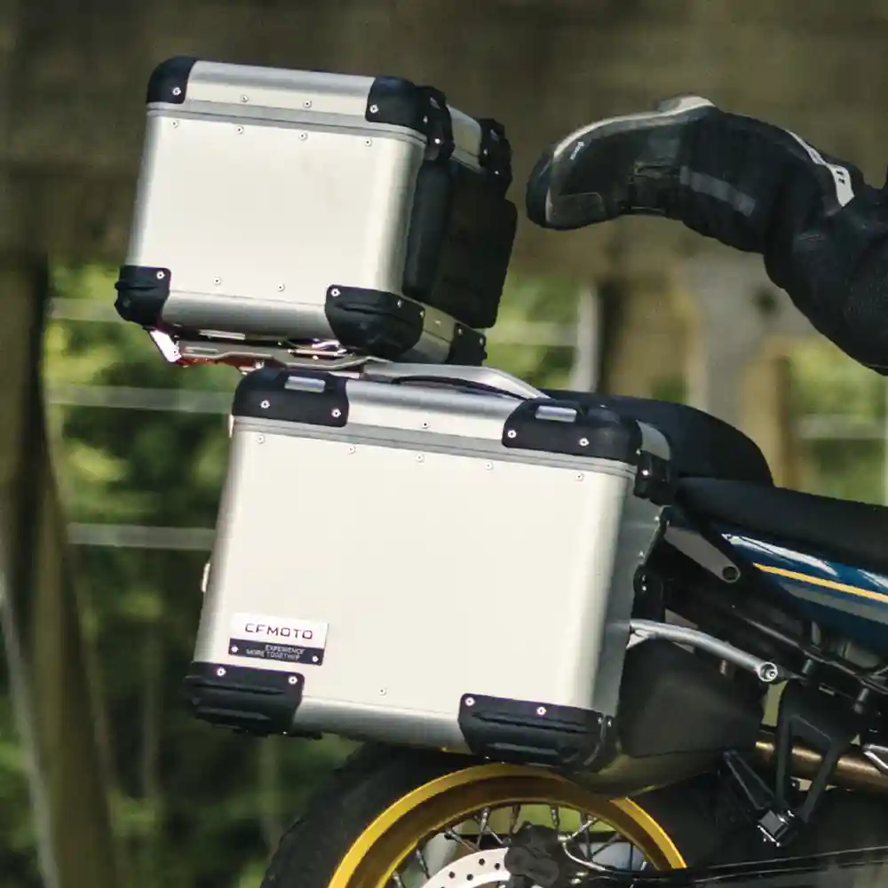 Siège ergonomique et réglable en hauteur, poignées et selle chauffantes de série. Valises latérales rigides incluses, pare-mains, protège-carter en aluminium, supports robustes pour bagagerie ou accessoires.