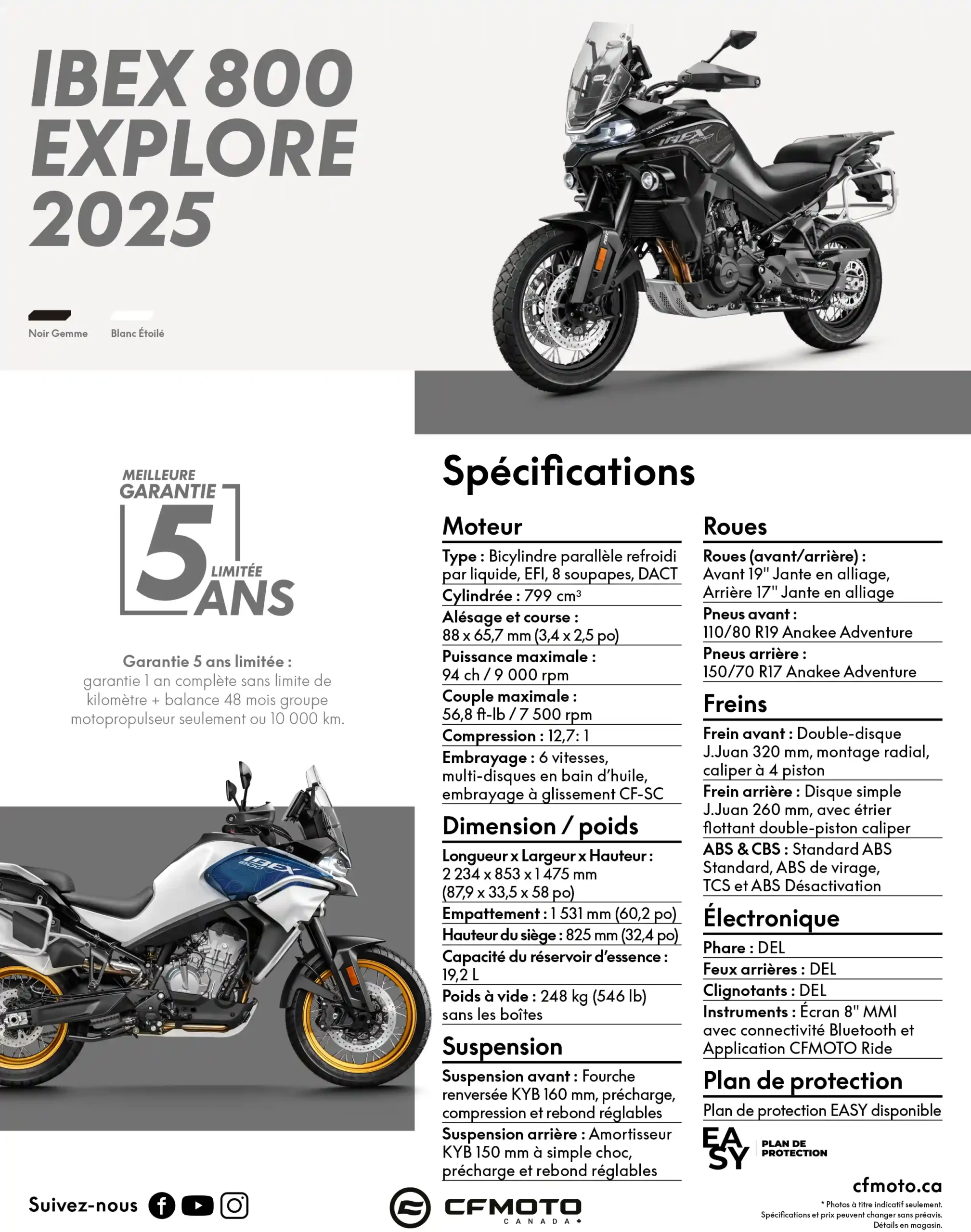 Garantie limitée de 5 ans standard, avec plan de protection EASY disponible selon le concessionnaire.