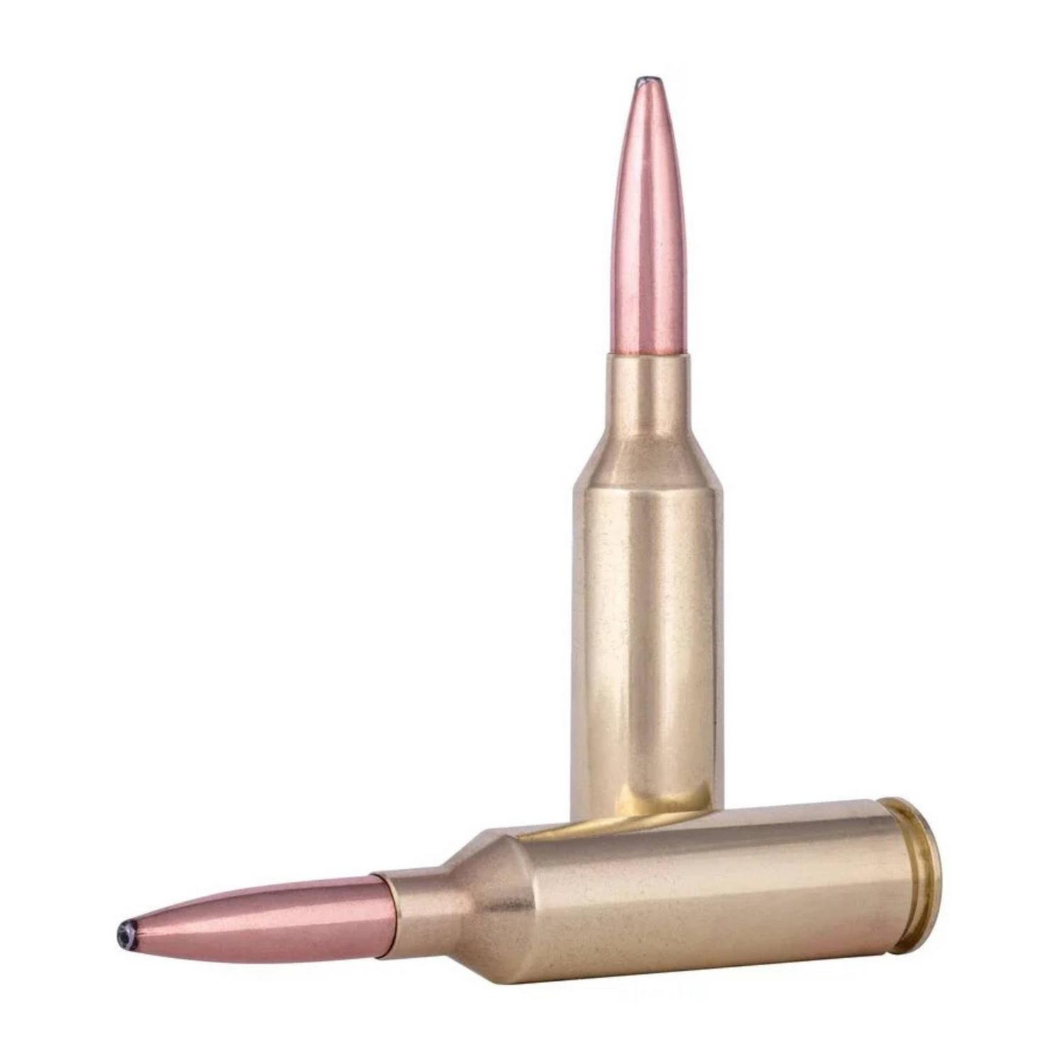 Chaque cartouche est chargée avec une grande régularité pour garantir une précision constante. La conception aérodynamique de la balle, avec sa queue de bateau, minimise la traînée et maximise la stabilité en vol, ce qui en fait un excellent choix pour les tirs à des distances de chasse pratiques.