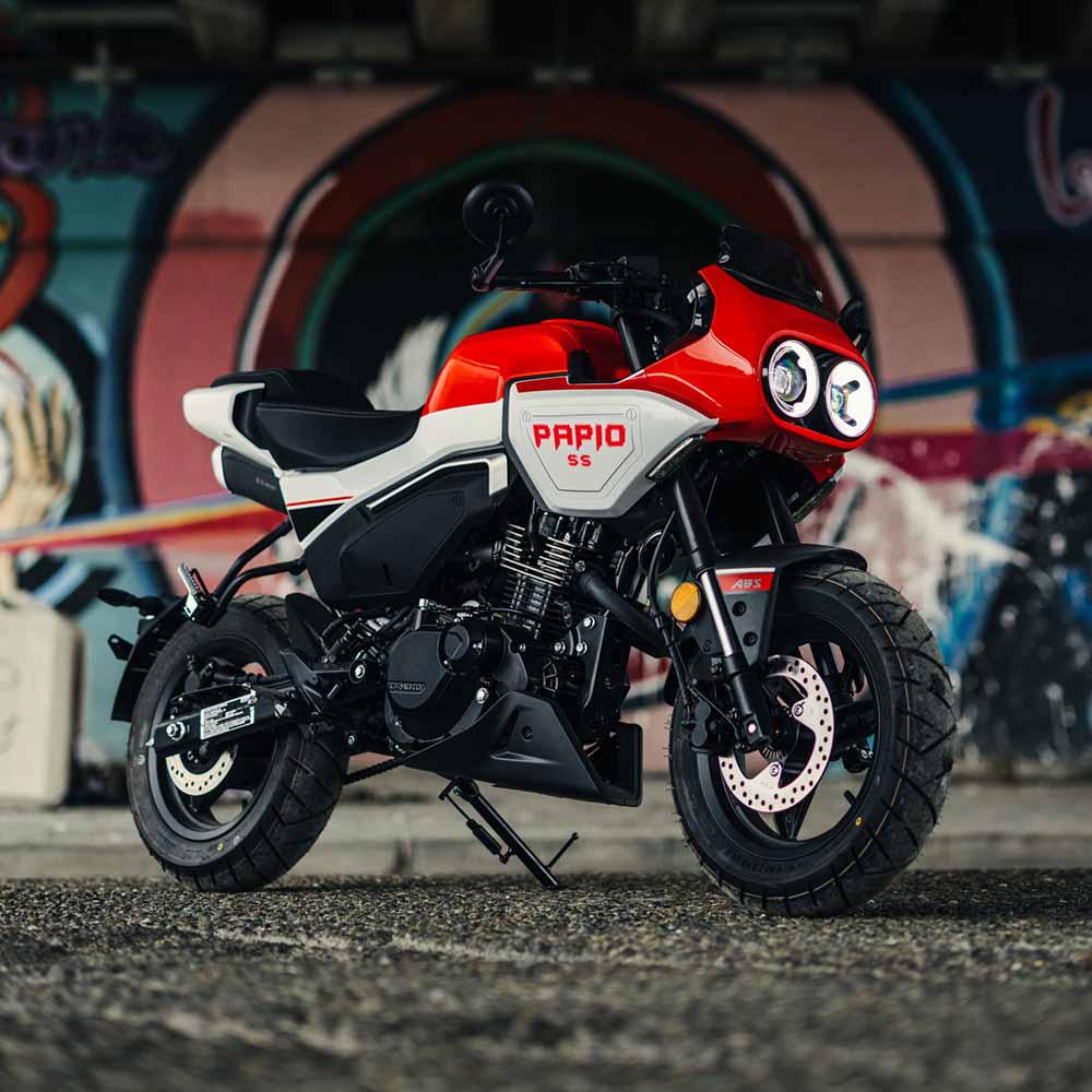 Découvrez le PAPIO SS ROUGE 2025, un mini bolide urbain au style café-racer affirmé. Compact, agile et ultra stylé, il concilie look rétro, maniabilité captivante et technologie moderne pour les trajets du quotidien.