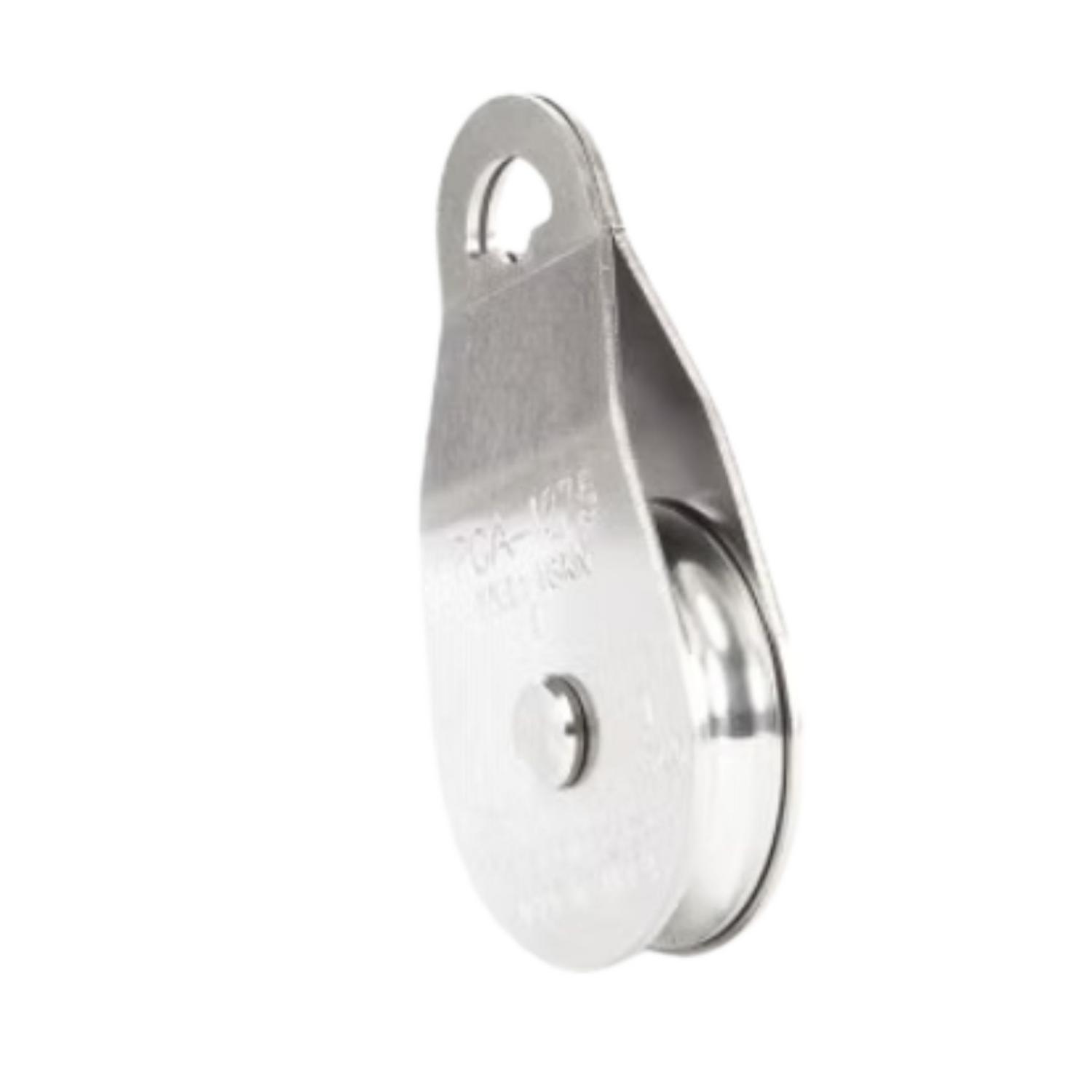 Cette poulie PCA à côtés oscillants en acier inoxydable est conçue pour faciliter l’installation et le guidage du câble dans diverses applications de tirage et de manutention.