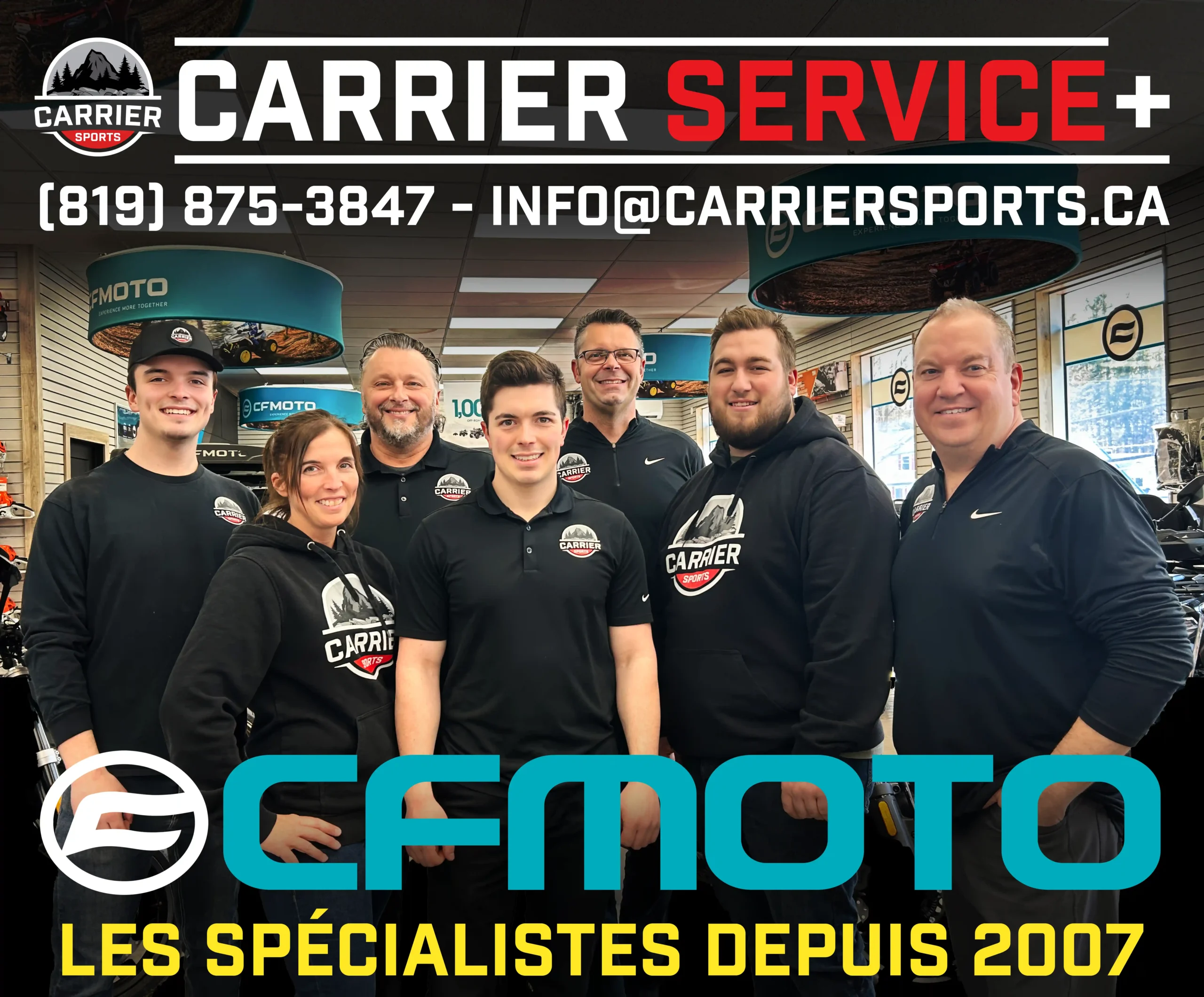 Allez de l’avant avec l’achat de votre CFMOTO chez carrier sports. Le seul à vous offrir la tranquillité d’esprit, carrier service+